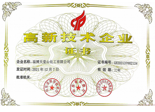 公司產(chǎn)品符合國家的產(chǎn)業(yè)政策,各種手續(xù)齊全,通過了環(huán)保、衛(wèi)生、消防、安全生產(chǎn)許可等各項驗收,企業(yè)化學品安全標準化三級達標驗收,并且通過了ISO9001質(zhì)量管理體系認證、ISO14001環(huán)境管理體系、ISO45001職業(yè)健康管理體系,先后被有關部門授予“市級重合同守信用企業(yè)”“消費者滿意單位”“質(zhì)量、計量管理先進單位”“勞動關系和諧企業(yè)”“企業(yè)免檢單位”“淄博市專精特新中小企業(yè)”“山東省化工明星單位”“山東化工發(fā)展?jié)摿?0強”“淄博市智能車間”“山東省創(chuàng)新型中小企業(yè)”“科技型中小企業(yè)”“高新技術(shù)企業(yè)”“山東省專精特新”等稱號。